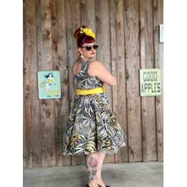 A super feminine circle dress, perfect for an afternoon pic-nic! This beautiful and refreshing model is our new favorite! A classic vintage cherry print and a cute bow on the front made this stunning dress confortable and easy to wear. Made with love for your satisfaction!