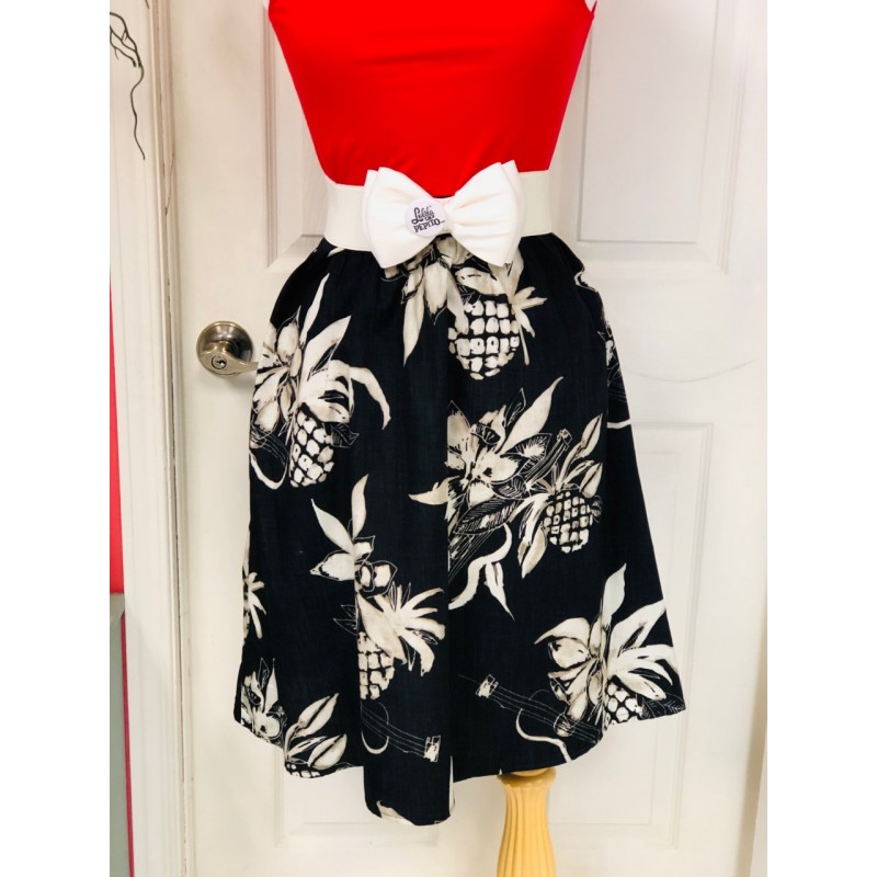 Classic high waist gathered skirt in super cute vintage print. Made out of high quality coton, with a large waist band and back zipper. This model is flattering for all body shapes.